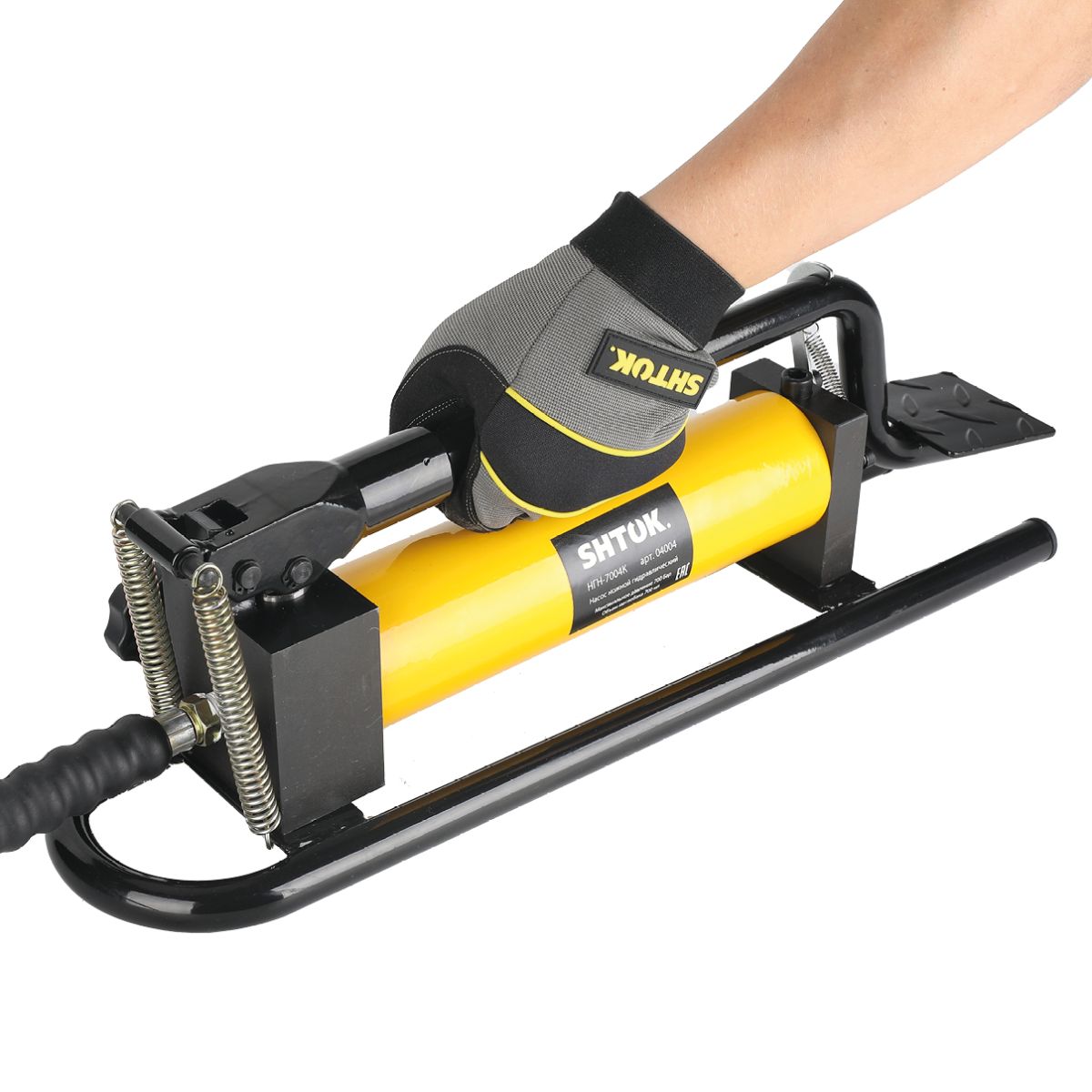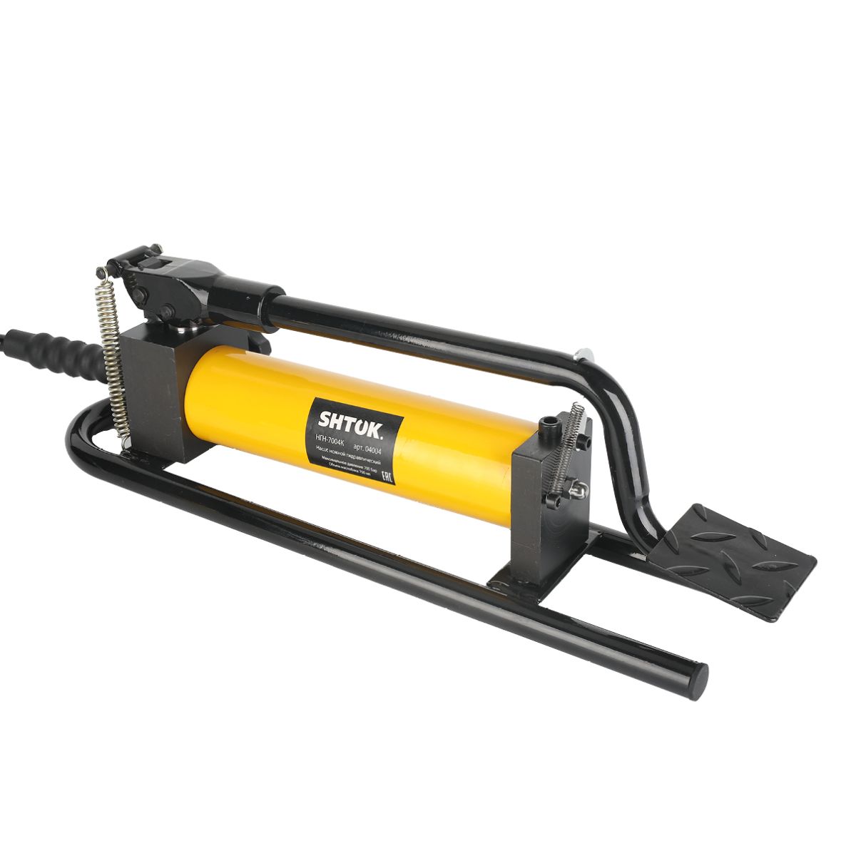 Гидравлический ножной насос НГН-7004К SHTOK 04004 предназначен для подключения прессов Шток. Насос развивает давление в 700 бар, имеет скоростной режим работы, предохранительный клапан и длинный рукав в комплекте. Совместимые пресса: ПГ-300М+, ПГ-300+, ПГЛ-60+, ПГ-400+, ПГ-630+, ШП-95+, ШР-150+, ШГ-150+.