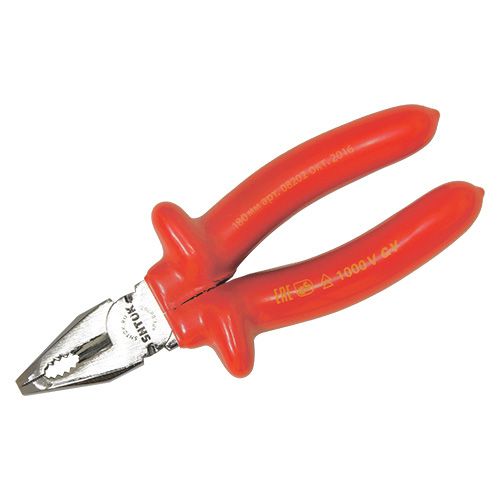 Диэлектрические пассатижи SHTOK 1000В 180 мм 08202 оснащены рабочей частью из хром-ванадиевой стали. Рукоятки инструмента выполнены со специальными упорами. Пассатижи предназначены для работ под напряжением пока не поврежден верхний красный слой рукояток.