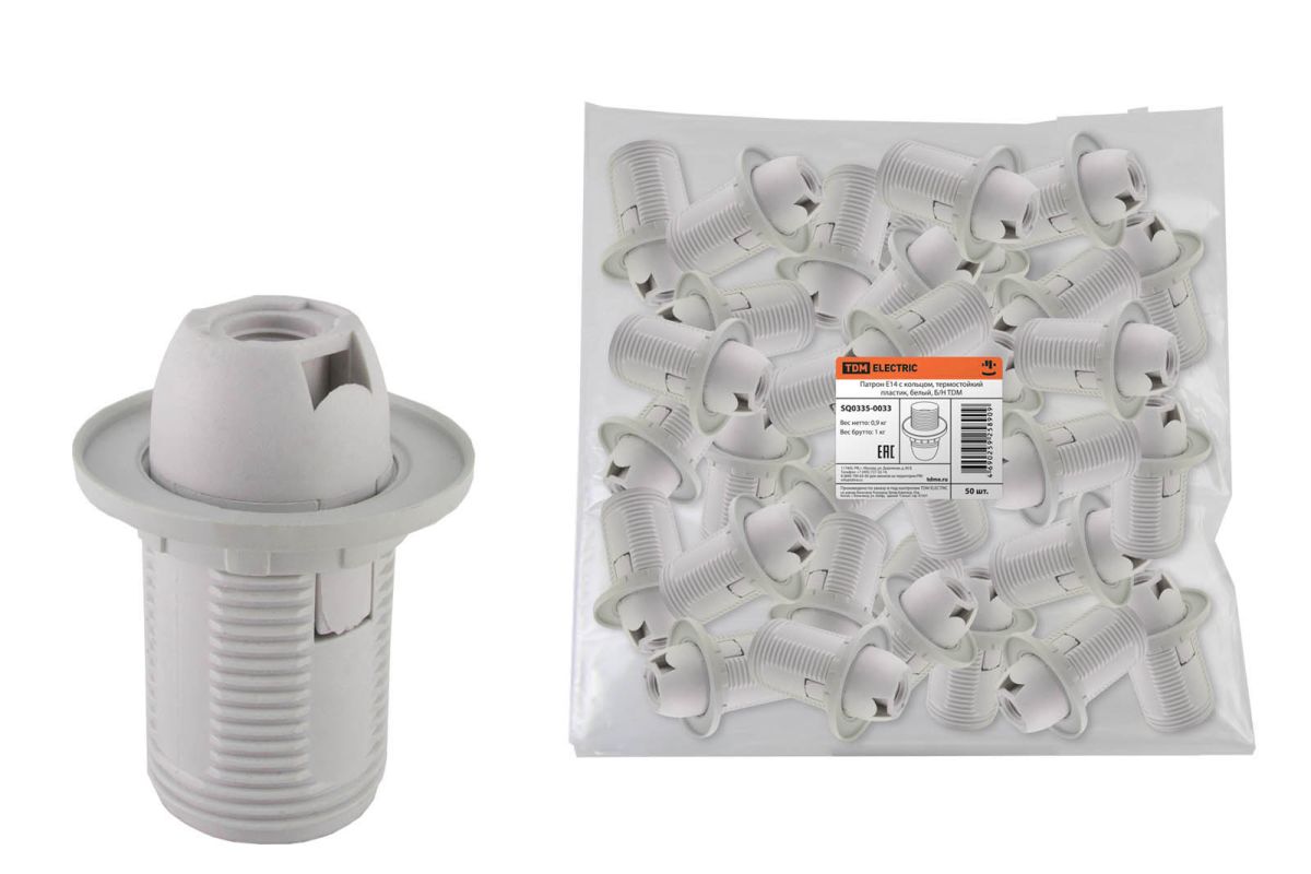 Читать все статьиПатрон Е14 с кольцом, термостойкий пластик, белый, Б/Н TDM