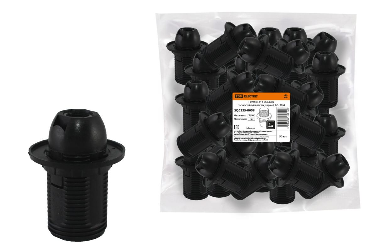 Патрон Е14 с кольцом, термостойкий пластик, черный, Б/Н TDM