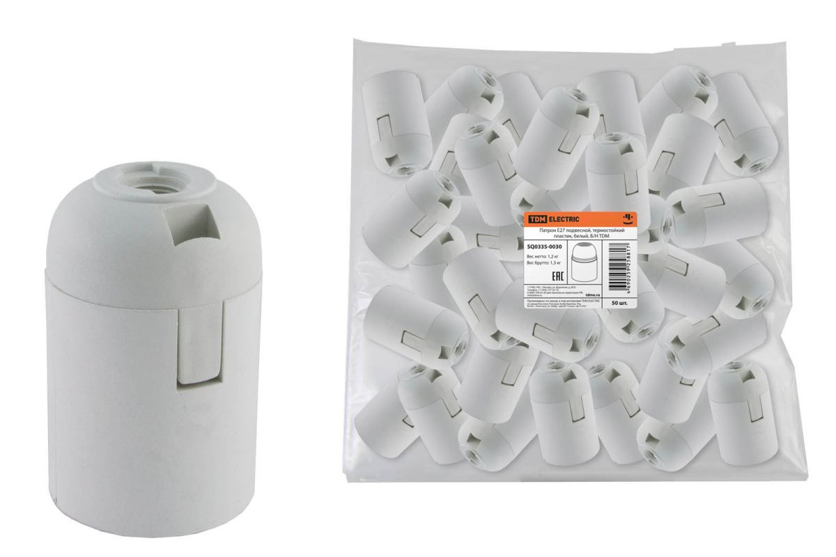 Читать все статьиПатрон Е27 подвесной, термостойкий пластик, белый, Б/Н TDM