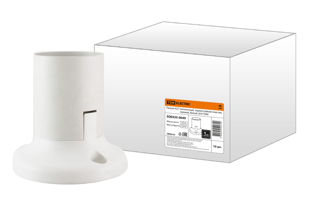Патрон Е27 потолочный, термостойкий пластик, прямой, белый, Б/Н TDM